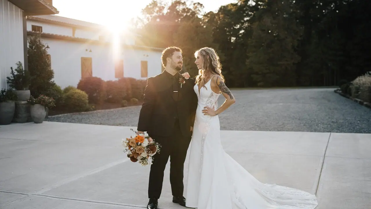 Nicole and Will said, “I do,” November 2, 2024, at The Evermore in Apex, NC. The venue offered the perfect rustic-chic setting for their wedding, complete with vibrant fall colors. During the ceremony, instrumental versions of their favorite country songs added a personal touch as the couple exchanged vows in front of family and friends.